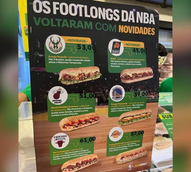 No último final de semana a rede de fast food Subway lançou uma novidade: lanches especiais de times da NBA, porém o que ninguém esperava e chamou muita atenção dos internautas e frequentadores da rede foram os preços. O subway é muito conhecida por ter diversas promoções de lanches montados por preços acessíveis, mas o novo lançamento tem sanduíches de até R$61.