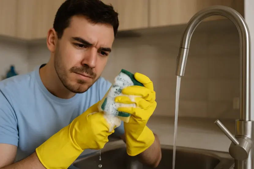 Outro erro comum — que eu também cometi por muito tempo — é “rebaixar” a esponja usada da pia para o fogão, depois para o banheiro e só então para o lixo. Parece sustentável, mas a verdade é que a esponja, depois de contaminada, pode espalhar bactérias em vez de ajudar na limpeza. O ideal é usá-la por no máximo 7 dias em ambientes úmidos e, depois disso, descartá-la.