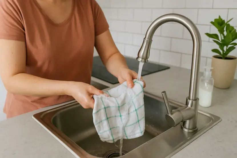 Um pano de prato duro, mal enxaguado e com cheiro desagradável pode se tornar um foco de bactérias. O resíduo de sabão facilita a proliferação de microrganismos e diminui a capacidade de absorção do pano, o que compromete a limpeza e aumenta o risco de contaminação cruzada — especialmente em panos usados para secar louças, utensílios ou as mãos.