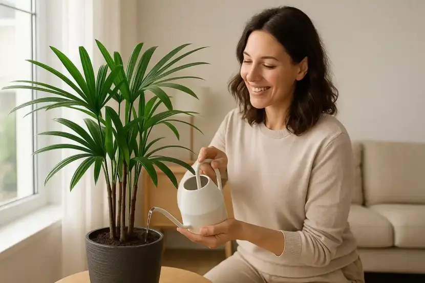 O erro mais comum é regar com muita frequência. Por ser uma planta robusta, a ráfia não exige regas constantes. Se o solo ainda estiver úmido, molhar novamente pode saturar as raízes e comprometer sua oxigenação.