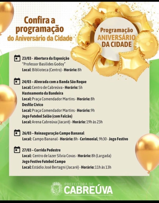 Cabreúva celebra 163 anos de emancipação nesta quinta-feira (24), e a Prefeitura preparou várias atrações e eventos para comemorar o aniversário da cidade.