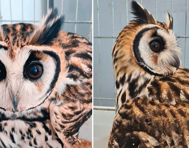 Uma coruja-orelhuda foi resgatada nesta quinta-feira (27) pela Defesa Civil no bairro Jacaré, em Cabreúva. Ela estava com as asas cortadas, o que indica que, provavelmente, ela estava sendo criada em cativeiro.