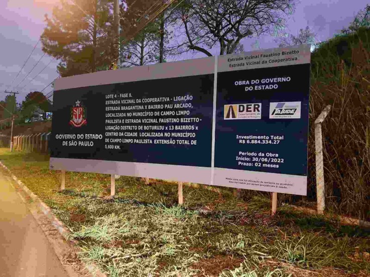 Duas importantes vias começam a ser recuperadas no município de Campo Limpo Paulista. As obras incluem a recuperação e recape da estrada Faustino Bizetto e estrada da Cooperativa, e são realizadas pelo Governo do Estado e Departamento de Estradas de Rodagem (DER), após a solicitação da Prefeitura. O investimento total para a obra foi de R$ 6.884.334,27 e a expectativa de término é para o final do mês de agosto.