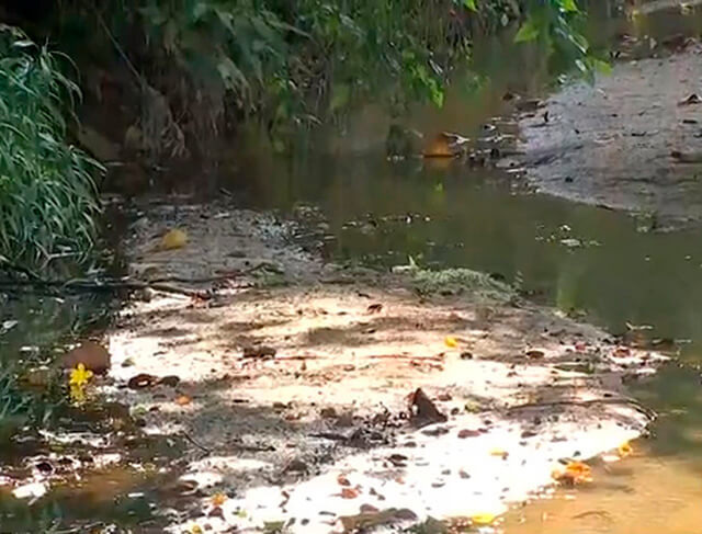 “Chegando ao local, a equipe se deparou com populares que sentia secura na boca e tontura”, informou a Defesa Civil que recolheu amostras da água juntamente com a Cetesb.