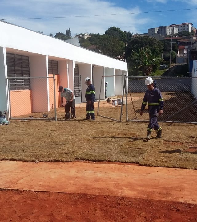 A equipe de Serviços Urbanos, de Campo Limpo Paulista, prossegue com as obras na Creche do Santa Lúcia, mesmo sem ter uma previsão oficial para reinício das aulas presenciais na rede municipal por conta dos índices da Covid-19. Nesta semana, foi colocado grama e a parte externa do prédio recebeu pintura.