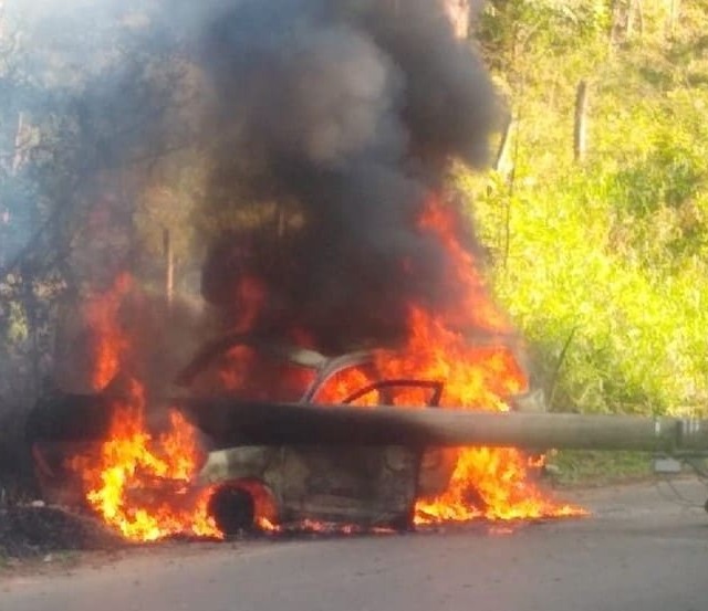 Um carro se chocou com um poste de energia elétrica e pegou fogo na tarde deste domingo (12), em Campo Limpo Paulista. De acordo com Defesa Civil, com a batida, o poste caiu sobre o veículo, mas a vítima conseguiu sair antes e passa bem.
