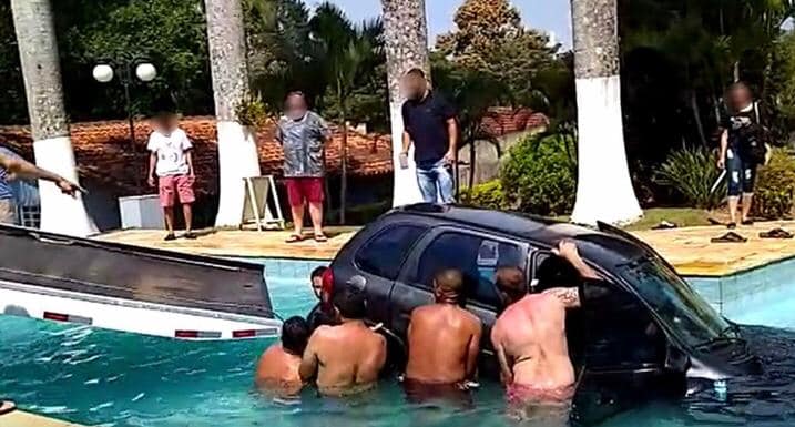Já o carro foi retirado da piscina por um guincho e com ajuda de convidados. As informações são do Folha Notícias.