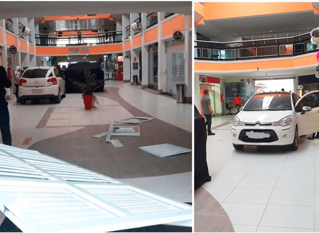 Um erro na troca de marcha fez um carro parar dentro do Shopping de Itatiba nesta sexta-feira (15).