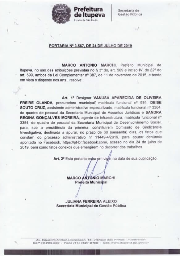 “A Prefeitura de Itupeva informa que lamenta o ocorrido e que já abriu Sindicância Investigativa para apurar os fatos, junto ao Fundo Social de Solidariedade.