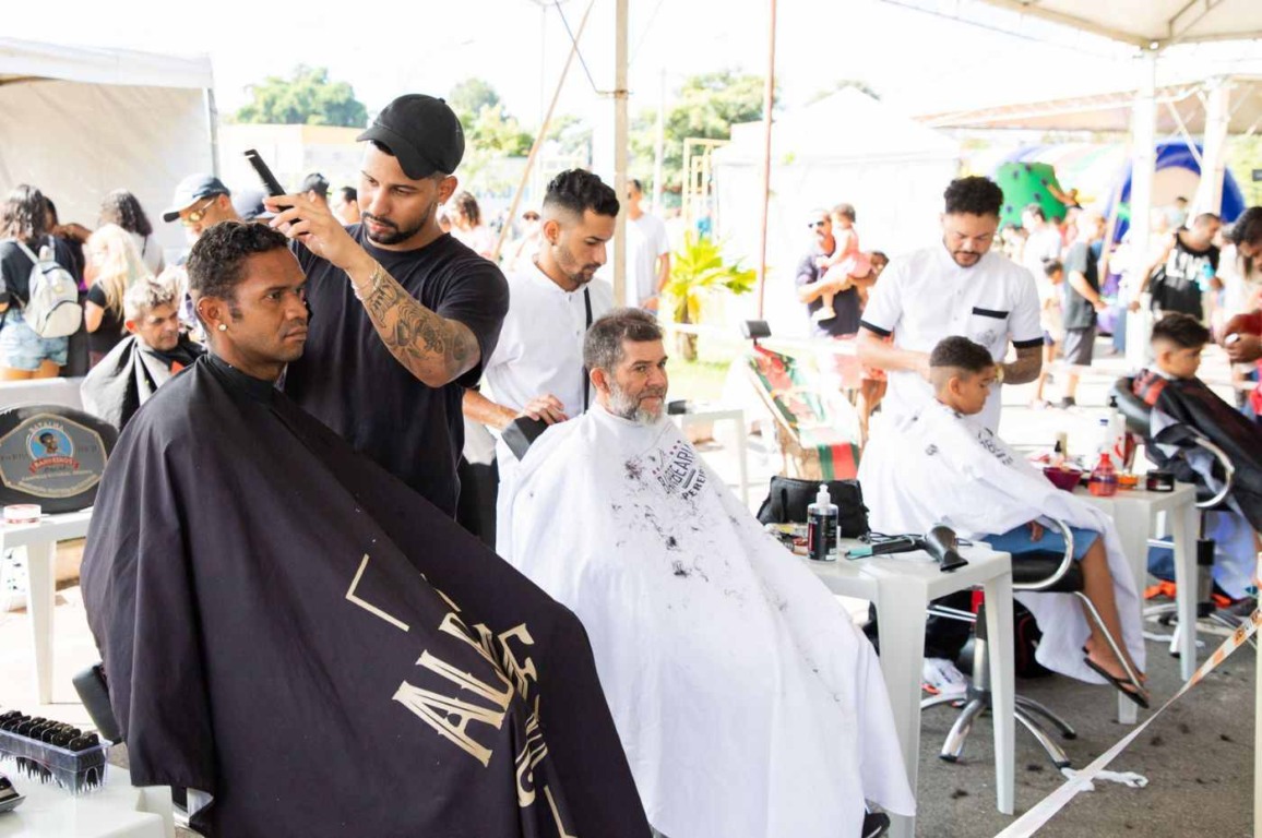 Um dos serviços com mais procurados foi o corte de cabelo e as tranças, que aconteceram em parceria com barbeiros e barbearias da cidade. Larissa Sampaio levou o filho Lorenzo para aproveitar o corte de cabelo. “Minha mãe me ligou para avisar que o Parque estava cheio de brinquedo. Quando cheguei aqui vi que estavam cortando o cabelo, daí aproveitei a oportunidade”, disse ela.