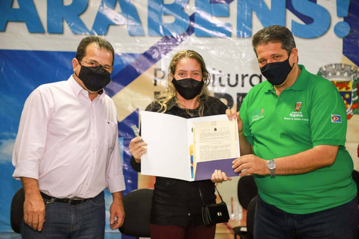 Nesta quinta-feira (16), o prefeito de Itupeva, Marcão Marchi, e o vice, Alexandre Mustafa, entregaram a documentação de regularização fundiária do Programa “A Casa é Sua” para mais 86 moradores do bairro Terra Brasilis.