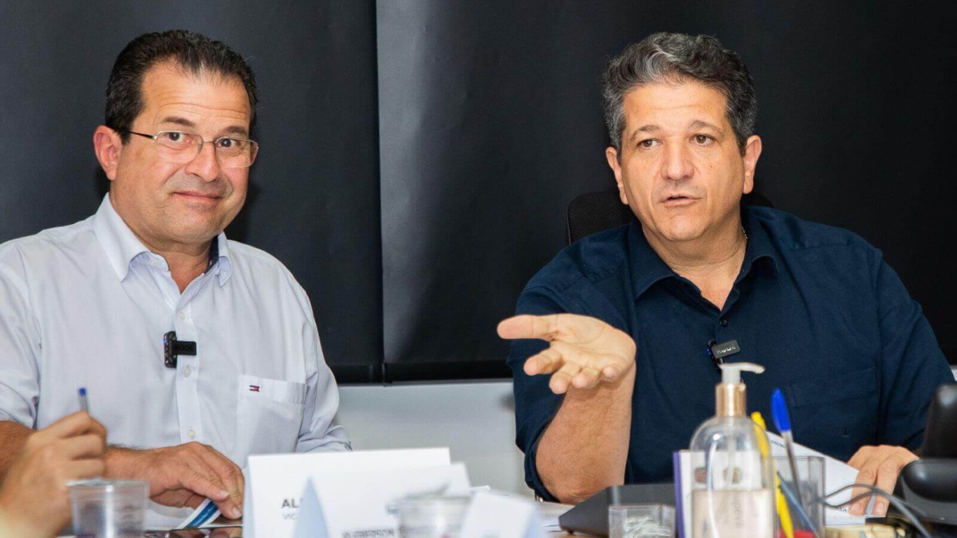 A coletiva de imprensa, realizada na sala de reuniões do gabinete, contou também com o vice-prefeito e secretário de governo, Alexandre Mustafá; coordenador do PDI, o chefe de gabinete Liraucio Tarini Junior; e o secretário de obras, Kléberson Renato da Silva.