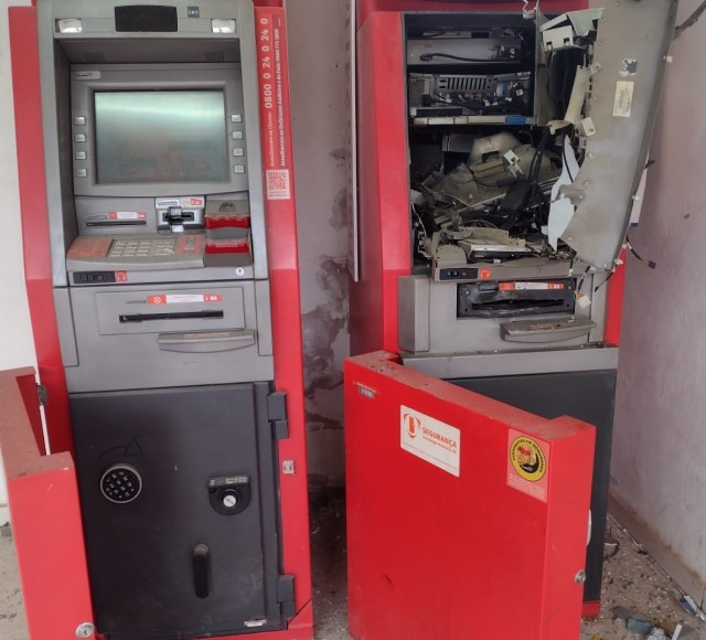 A Polícia Militar foi acionada por volta das 3h e encontrou os dois caixas eletrônicos totalmente danificados. Os criminosos não deixaram nenhuma ferramenta ou objeto usado no crime.