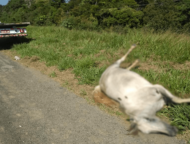 Um cavalo morreu depois de ser atropelado por um caminhão na madrugada desta quinta-feira (13) próximo à saída para a rodovia Dom Pedro, na rodovia Edgard Máximo Zambotto.
