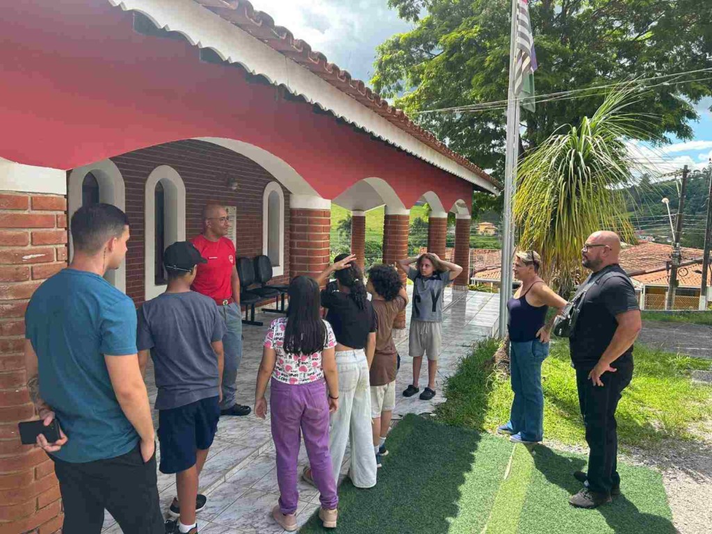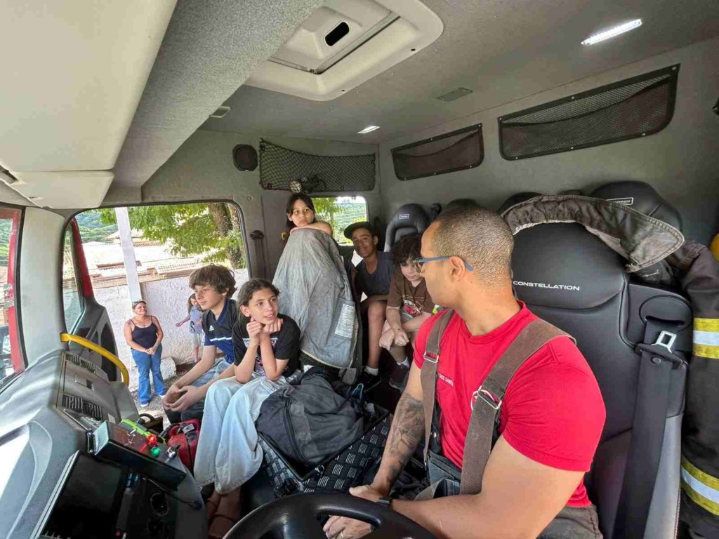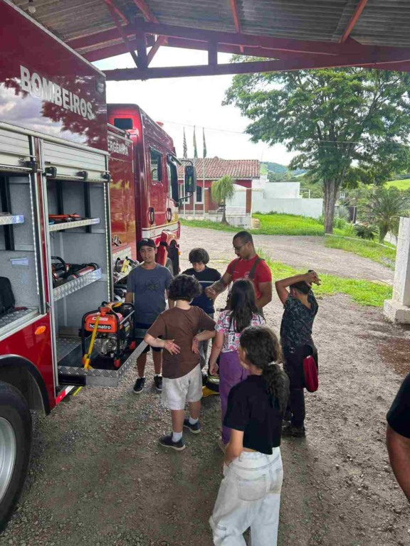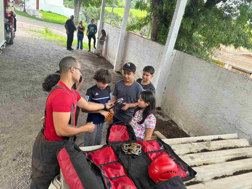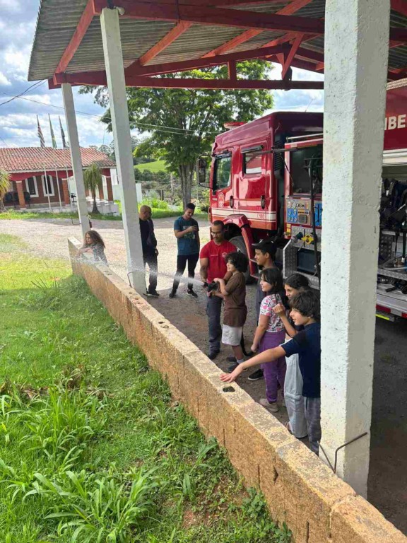 Nesta quinta-feira (12), o Corpo de Bombeiros de Jundiaí recebeu a visita dos funcionários da Secretaria da Cultura de Jarinu, Daniele, Bruno e Eduardo, acompanhados de sete crianças.