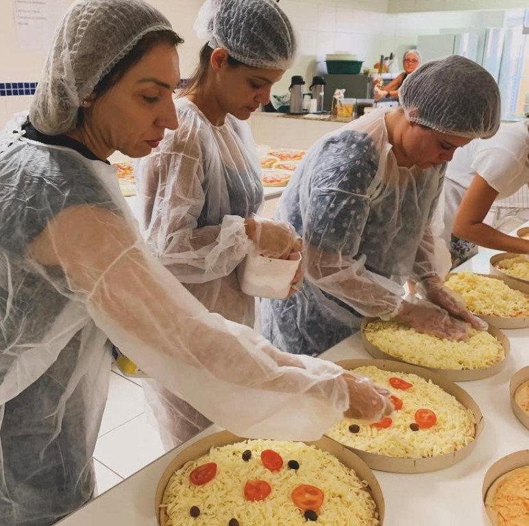 Voluntários da entidade preparam as pizzas com ingredientes de alta qualidade e muito carinho. Os sabores disponíveis são: Muçarela, Calabresa e À Moda.
