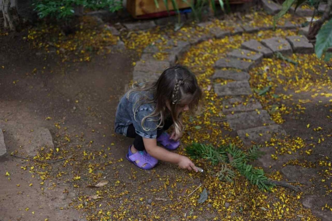 Quem passa em frente ao muro azul da Emeb Manoel Aníbal Marcondes, localizada no centro da cidade, nem imagina que logo ali, atrás da fachada comum às escolas municipais de Jundiaí, se esconde um Quintal encantado, cheio de árvores frutíferas, insetos instigantes e uma variedade de espaços que desafiam e encorajam crianças e adultos a ressignificarem suas relações com a natureza