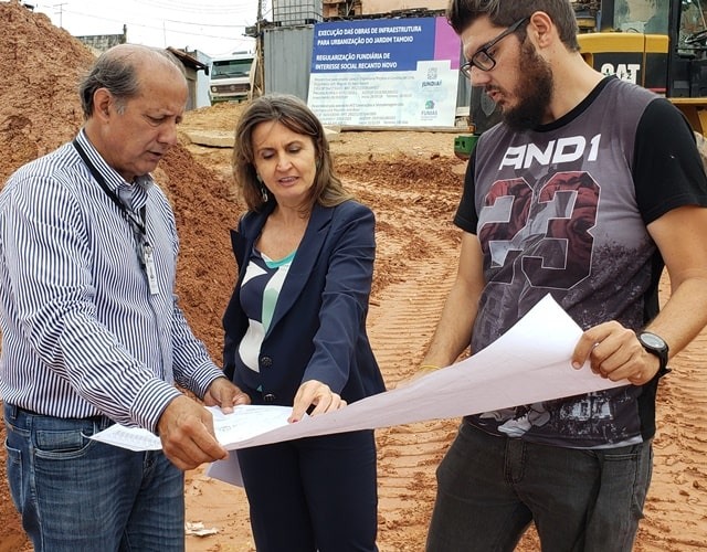 A superintendente da FUMAS, Solange Marques, e o superintendente adjunto de Políticas Habitacionais da Fundação, Leopoldo Brunelli, visitaram na manhã de ontem (12) às obras de infraestrutura para regularização do Recanto Novo, no Jardim Tamoio, em Jundiaí (SP).