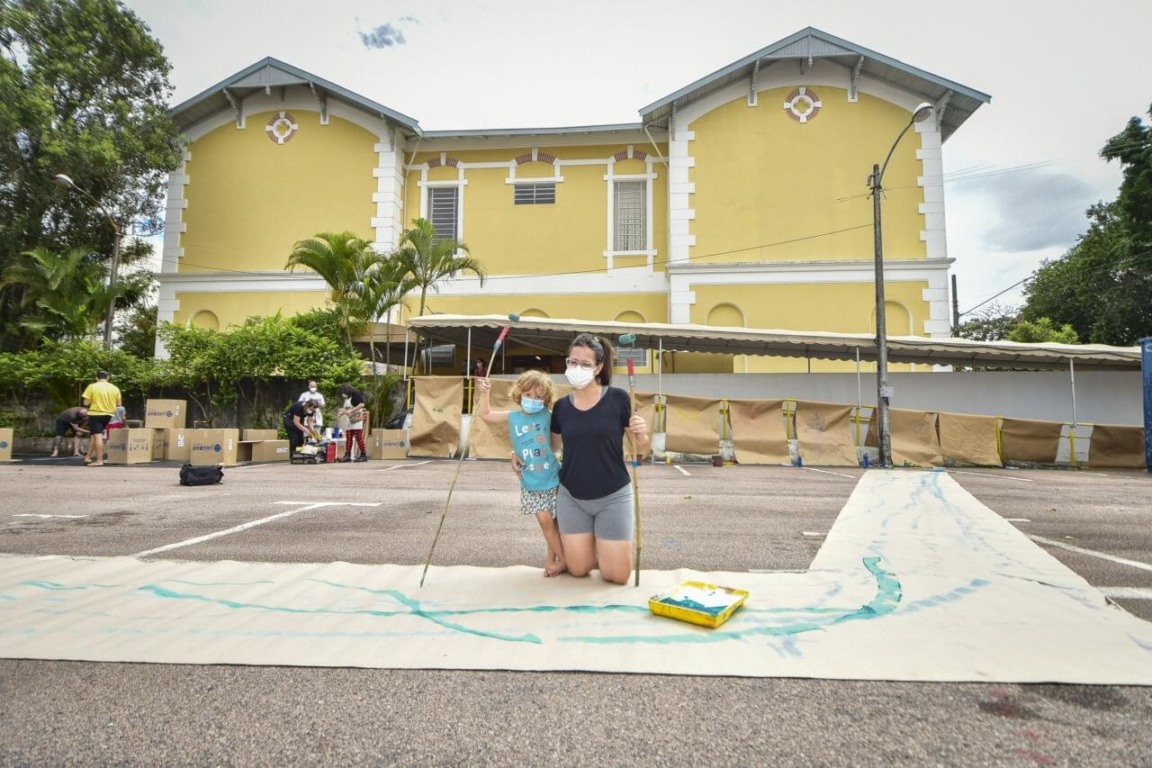 “Espalhamos caixas e papelão pelo espaço, para que os participantes possam pintar e criar o que quiserem. Além de pincéis, também disponibilizamos outros materiais mais inusitados, para que as crianças não fiquem presas e libertem a criatividade”, explicou a arte-educadora Iara Jamra.