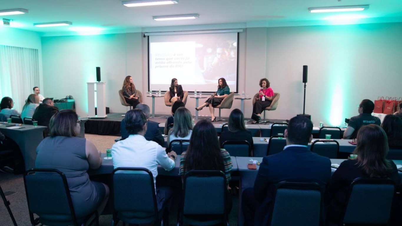 O painel “Impacto da Solidão Mundial no Ambiente Corporativo” reuniu especialistas para debater o tema sob a perspectiva das empresas. As palestrantes Luciana Teles (Continental), Elisângela Lima (FINI) e Fernanda Chamba (Grupo Montekali) compartilharam suas experiências e desafios de promover a conexão entre os colaboradores.