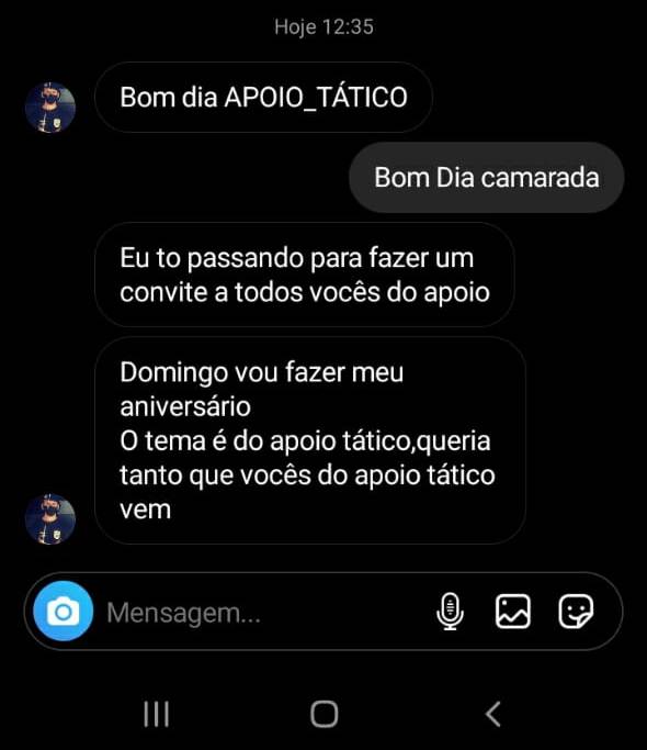 Mensagem que Guilherme mandou pelas redes à equipe do Apoio Tático (Foto: Divulgação (GMJ)