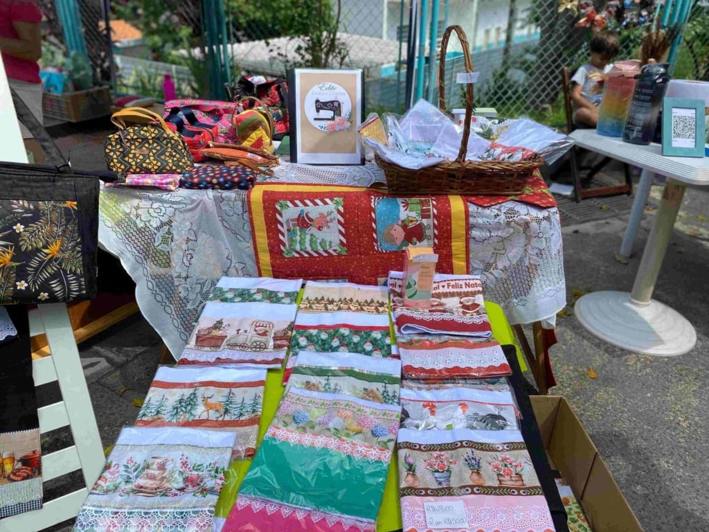“Comecei a pensar e fazer pra mim, comecei a fazer bolsas, pano de copa e guardanapo para vender”, comenta. E logo a fama de produtos de qualidade começou a se espalhar na vizinhança até que seu neto chegou da escola falando da Feira da Família Empreendedora e ali ela enxergou a oportunidade de dar o pontapé inicial de sua carreira.