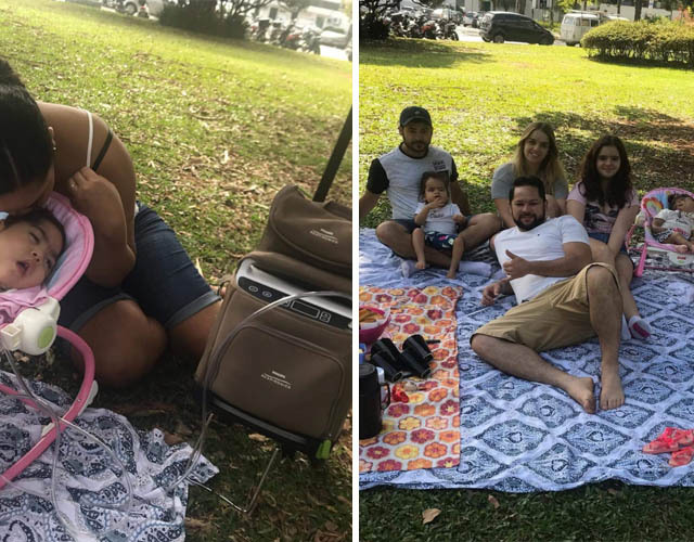 A pequena Alícia, de dois anos, foi pela primeira vez ao parque no último domingo (14), graças ao seu novo suprimento de oxigênio, comprado após vaquinha online, em uma grande corrente do bem.