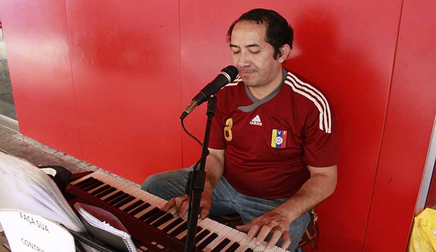 Já o venezuelano Marcos Sanchez encontrou na sua voz e no seu conhecimento em teclado a oportunidade de ganhar uma renda para se sustentar e para enviar dinheiro para sua família, que ainda vive na Venezuela.