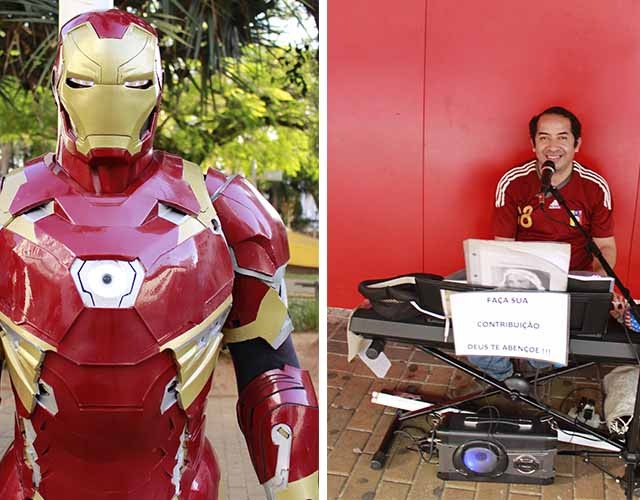 Na rua Barão de Jundiaí, a mais movimentada do Centro de Jundiaí e fechada apenas para pedestres, os artistas de rua estão aos montes. Em uma rápida caminhada pelo local, o Tribuna de Jundiaí conheceu dois destes artistas: Antoni Zago, de 30 anos, que se fantasia de Homem de Ferro; e o venezuelano Marcos Sanchez, de 40 anos, que canta músicas gospel e toca teclado.