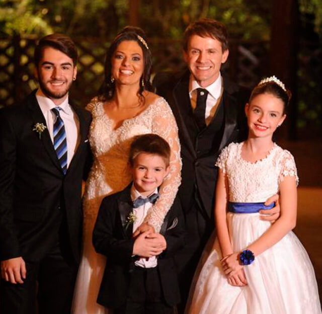 Sua esposa Viviane Quiessi e seus filhos: Rafaela, Lucas e Gabriel Battalini