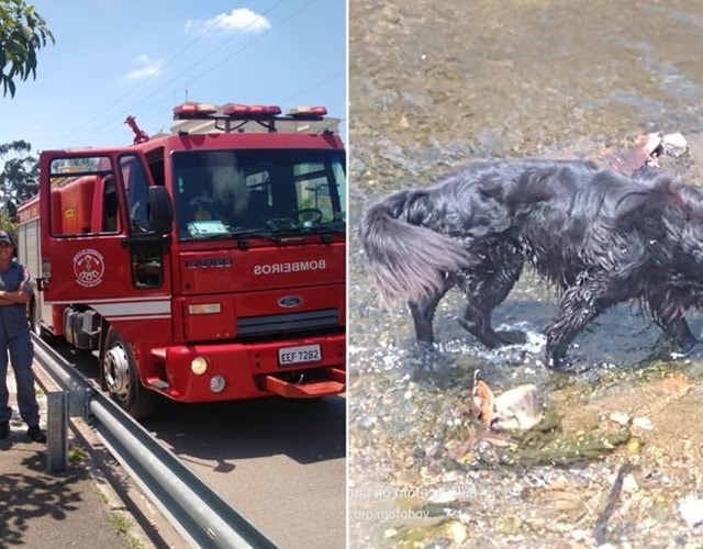 Neste sábado (19), por volta das 11h, o Corpo de Bombeiros foi acionado para resgatar um cachorro que caiu no Córrego, do bairro Colônia, em Jundiaí (SP).