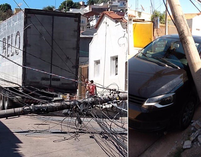 No início da tarde desta segunda-feira (12), um caminhão derrubou quatro postes no bairro Ponte São João, em Jundiaí.
