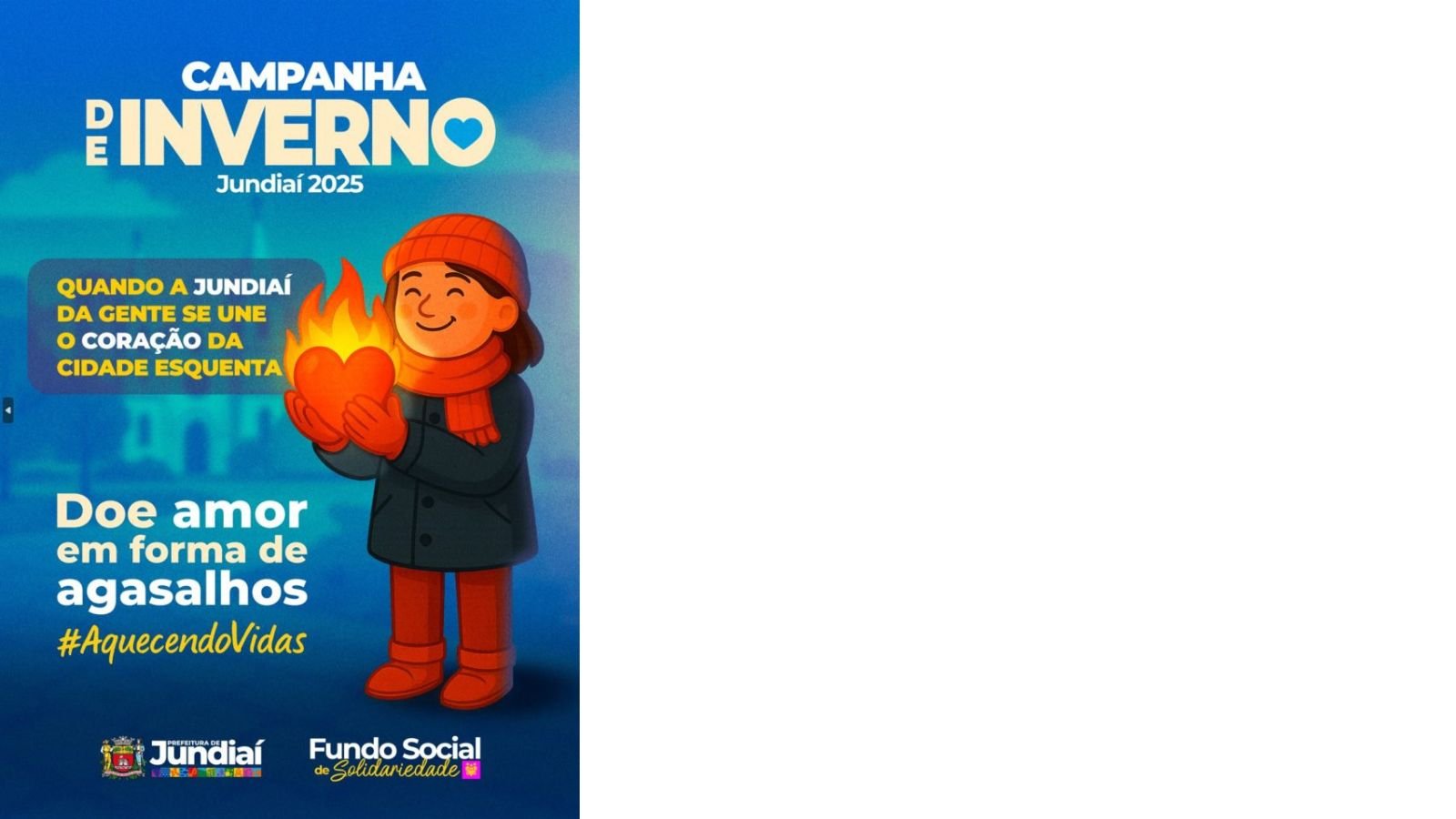 O Fundo Social de Solidariedade (Funss) de Jundiaí (SP) deu início, na quarta-feira (23), à edição 2025 da Campanha ‘Aquecendo Vidas’, voltada à arrecadação de roupas, calçados, mantas e cobertores em bom estado. A iniciativa tem como objetivo amparar famílias em situação de vulnerabilidade social assistidas por entidades cadastradas na cidade.