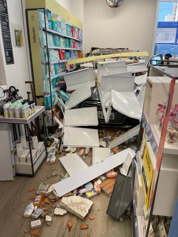 Na tarde desta sexta-feira (25) funcionários e clientes de uma farmácia de Jundiaí se assustaram com um acidente envolvendo um carro. O veículo, um Audi, invadiu a farmácia, atravessando uma parede.
