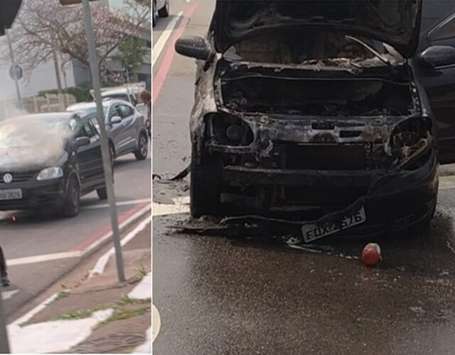 Um veículo pegou fogo no cruzamento das avenidas dos Ferroviários e Nove de Julho, em Jundiaí (SP), nesta quinta-feira (19), por volta das 9h45.