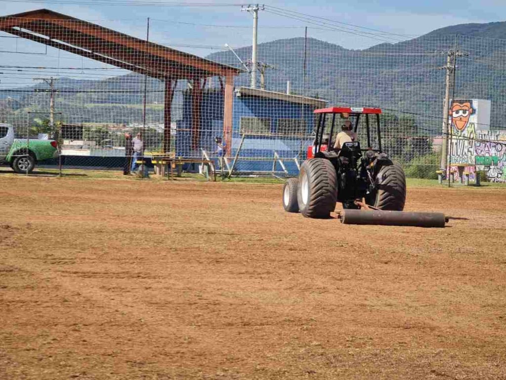 Já no CECE Léo Pereira Nogueira, no bairro Medeiros, está sendo realizada a troca do gramado do campo de futebol. As obras de nivelação do campo, juntamente com a de adequação para os sistemas de drenagem e irrigação, serão instalados nos próximos dias.