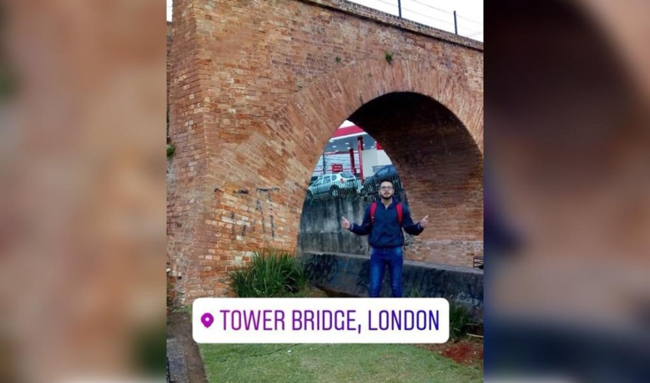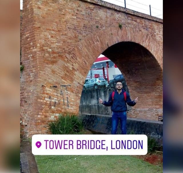 Munido apenas de um telefone celular, Paulo Santiago, estudante de 20 anos, protagonizou uma cena que vem arrancando diversas reações e risadas na internet: ele postou uma foto com uma mochila nas costas em frente à Ponte Torta, um dos princiapis símbolos de Jundiaí, no bairro do Vianelo, simulando estar na Tower Bridge, em Londres.