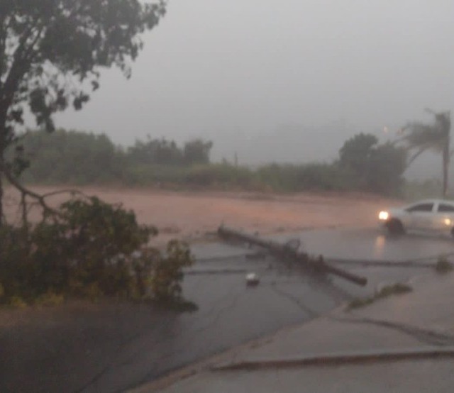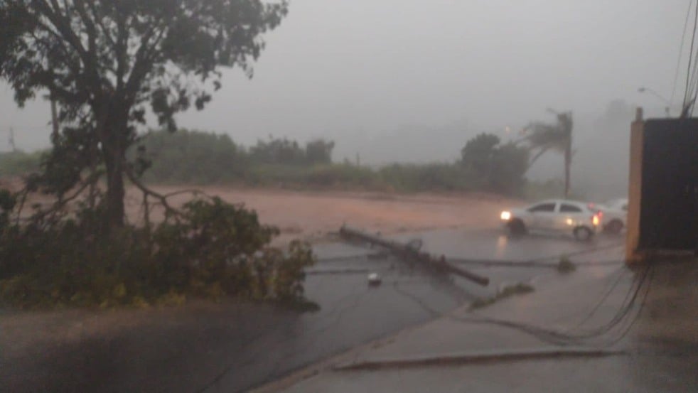 Um dos carros chegou a ficar preso devido ao trecho ter ficado alagado. Já no Jardim Buriti, um poste caiu com a força do vento.