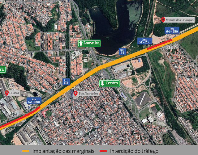 A partir da próxima segunda-feira (12), iniciarão as obras de implantação de vias marginais entre os km 62 e 65 da rodovia João Cereser (SP-360), em Jundiaí. Por isso, a Prefeitura da cidade anunciou algumas alterações no tráfego e nas linhas de ônibus urbano da região.