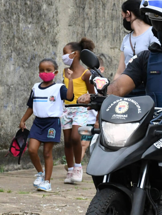 Com a volta às aulas presenciais, a partir de hoje, segunda-feira (1), a Guarda Municipal de Jundiaí realiza a ronda escolar “Anjos da Guarda” nas escolas municipais. O objetivo é estar mais próximo do aluno e ampliar a sensação de segurança entre as crianças famílias. As aulas ocorrerão em espaços abertos da própria unidade escolar e em equipamentos públicos de suas proximidades.