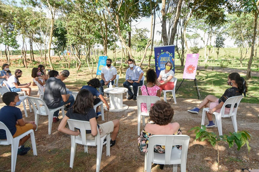 A reunião final do Comitê das Crianças deste ano foi realizada na tarde desta quarta-feira (16), sob a sombra das árvores do Mundo das Crianças. Como previsto para a ocasião, o prefeito Luiz Fernando Machado participou do encontro, que integrou a programação do aniversário de 365 anos da cidade. No documento entregue ao chefe do Executivo, a arborização da cidade, a instalação de brinquedos para cadeirantes, deficientes visuais e com estímulos sensoriais para autistas foram os pedidos dos pequenos para que Jundiaí se torne, cada vez mais, uma Cidade das Crianças.
