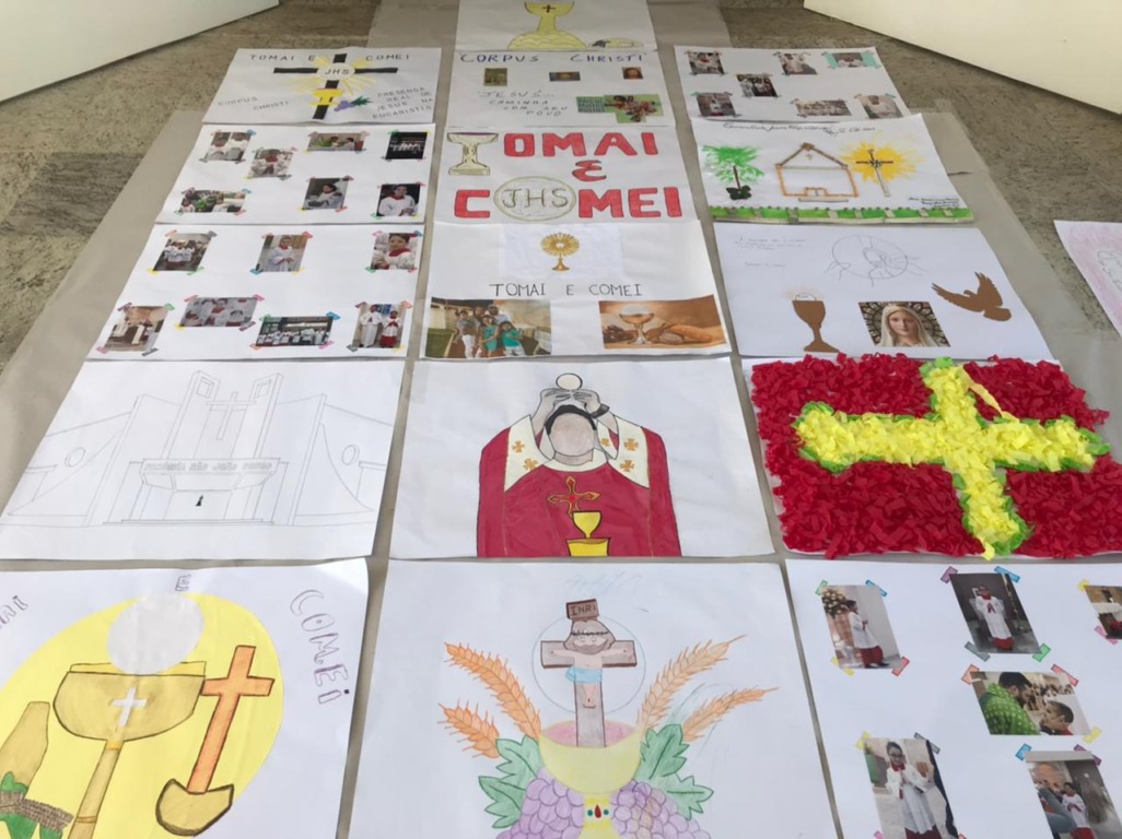 Este ano, por causa da pandemia, a criação do tapete foi realizado com cartazes desenhados pelos frequentadores da igreja, que contabilizou mais de 300 obras. De acordo com o pároco, padre Michael Henrique dos Santos, a escolha diferente para este ano teve como objetivo envolver os fiéis de maneira segura, para não gerar aglomeração.