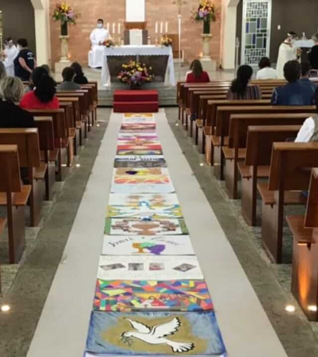 Este ano, por causa da pandemia, a criação do tapete foi realizado com cartazes desenhados pelos frequentadores da igreja, que contabilizou mais de 300 obras. De acordo com o pároco, padre Michael Henrique dos Santos, a escolha diferente para este ano teve como objetivo envolver os fiéis de maneira segura, para não gerar aglomeração.