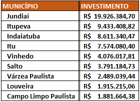 Confira os municípios com principais investimentos na região de Jundiaí em 2021: