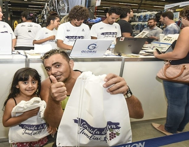 Na manhã desta sexta-feira (10), crianças e adultos fizeram a retirada dos kits, com camiseta e identificação, para participar da Corrida da Uva que será realizada neste final de semana em vinhedos de Jundiaí (SP).