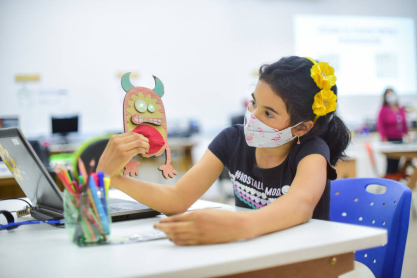 Maria Clara Barreto, 9 anos, é aluna da EMEB Marcos Gasparian, mas ainda não conhecia o Fab Lab. Em sua primeira visita ao laboratório, ela aprendeu a fazer o projeto utilizando circuito para acender lâmpadas de LED em um protótipo feito de papelão e que, para ela, se parece com um ‘monstrinho’. “Eu adorei aqui (Fab Lab). É um lugar onde dá para fazer coisas bem legais utilizando tecnologia. Hoje aprendemos a fazer esses ‘monstrinhos’ de papelão, que acendem os olhos. Usamos LED, fio, papel alumínio e fita isolante. Foi bem legal. O meu monstrinho já tem até nome, será Jonathan”, contou.