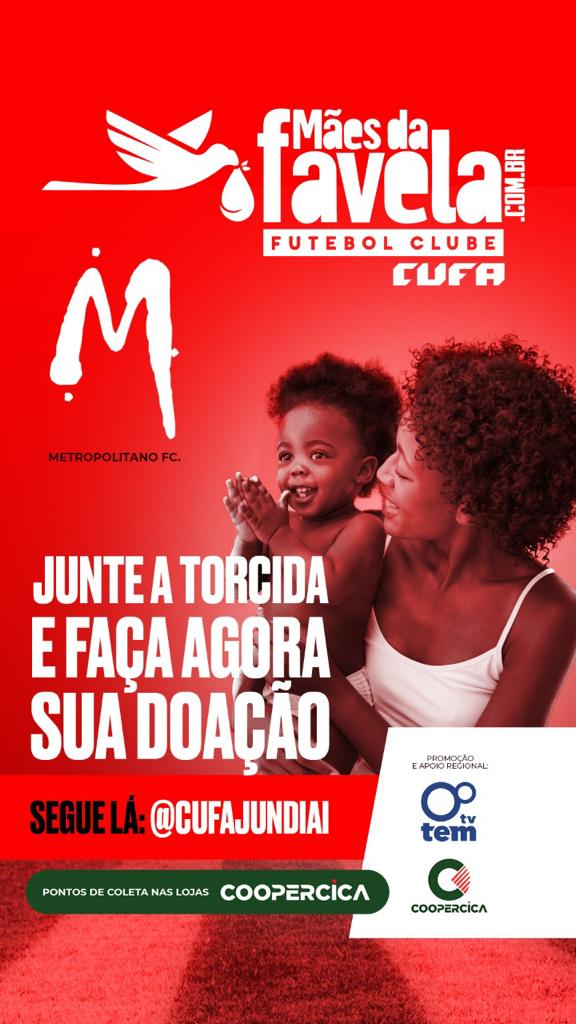 A CUFA (Central Única das Favelas) Jundiaí deu início à campanha “Mães da Favela Futebol Clube” para arrecadação de alimentos. A iniciativa é nacional e tem objetivo de ajudar as famílias mais necessitadas, numa parceria com os principais clubes brasileiros. Em Jundiaí e região, o representante é o Metropolitano Futebol Clube, que se dispôs a ajudar na campanha e já está convocando as torcidas para colaborar.