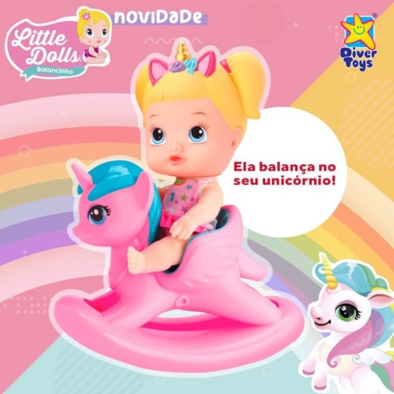 Uma bonequinha super fofa que adora balançar no seu unicórnio!