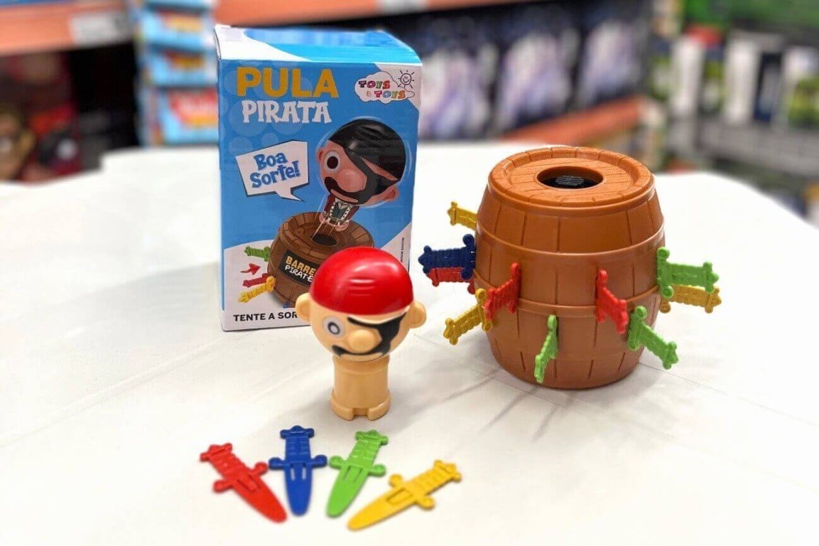 Diversão garantida com esse jogo que nunca sai de moda! O Barril Pula Pirata é a opção ideal para dar boas risadas com a família toda. Que tal reunir os amigos para curtir essa brincadeira? Valor: R$ 29,99.