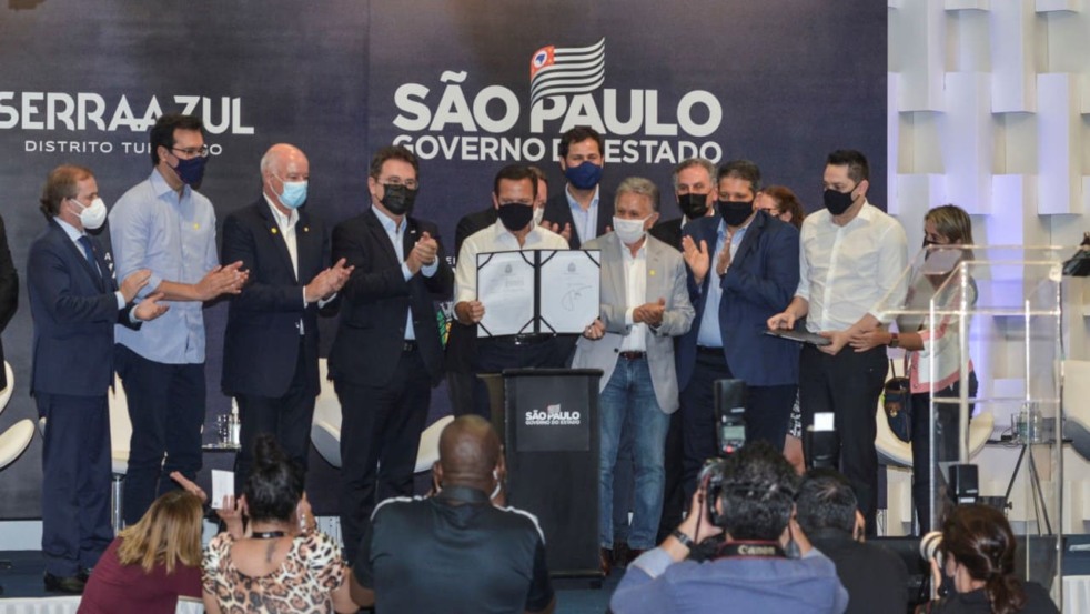Com a presença do governador João Doria, prefeito de Jundiaí, Luiz Fernando Machado e prefeitos das cidades de Itupeva, Louveira e Vinhedo, foi assinado, nesta segunda-feira (29), o decreto de criação do Distrito Turístico Serra Azul, englobando um complexo de parques temáticos e centros de compras na região de Jundiaí. O evento foi realizado no White Pavillon – Wet’n Wild.